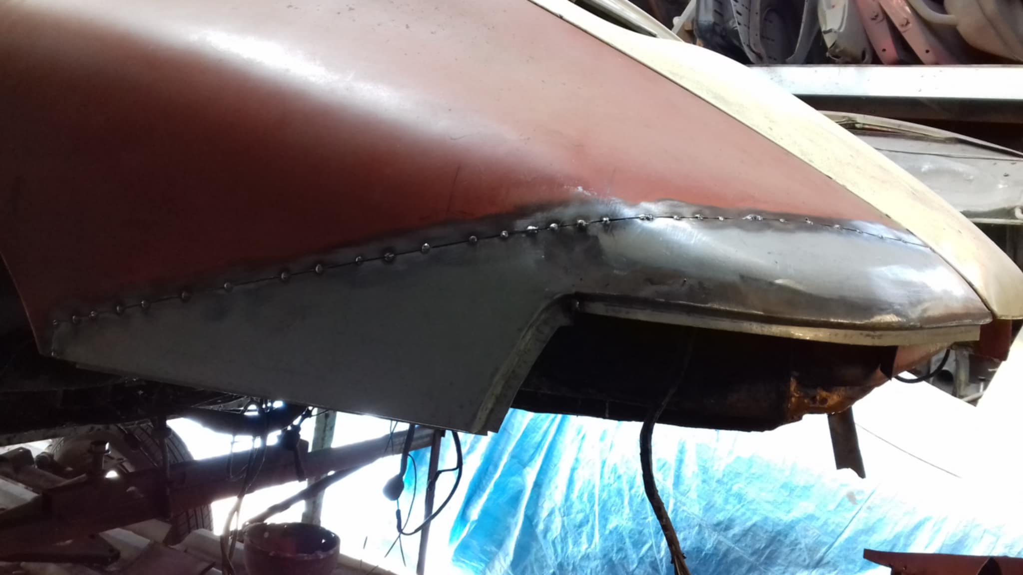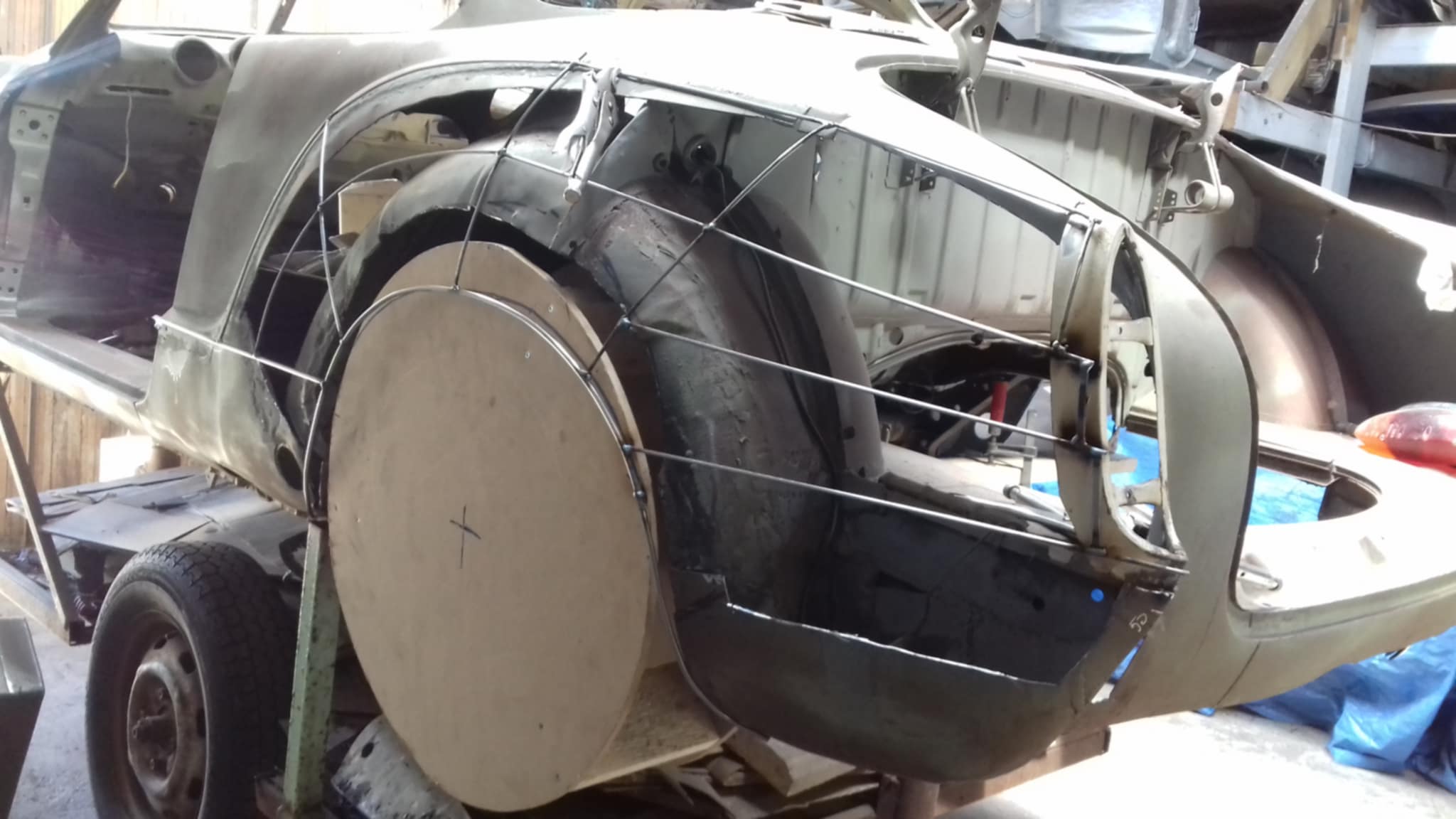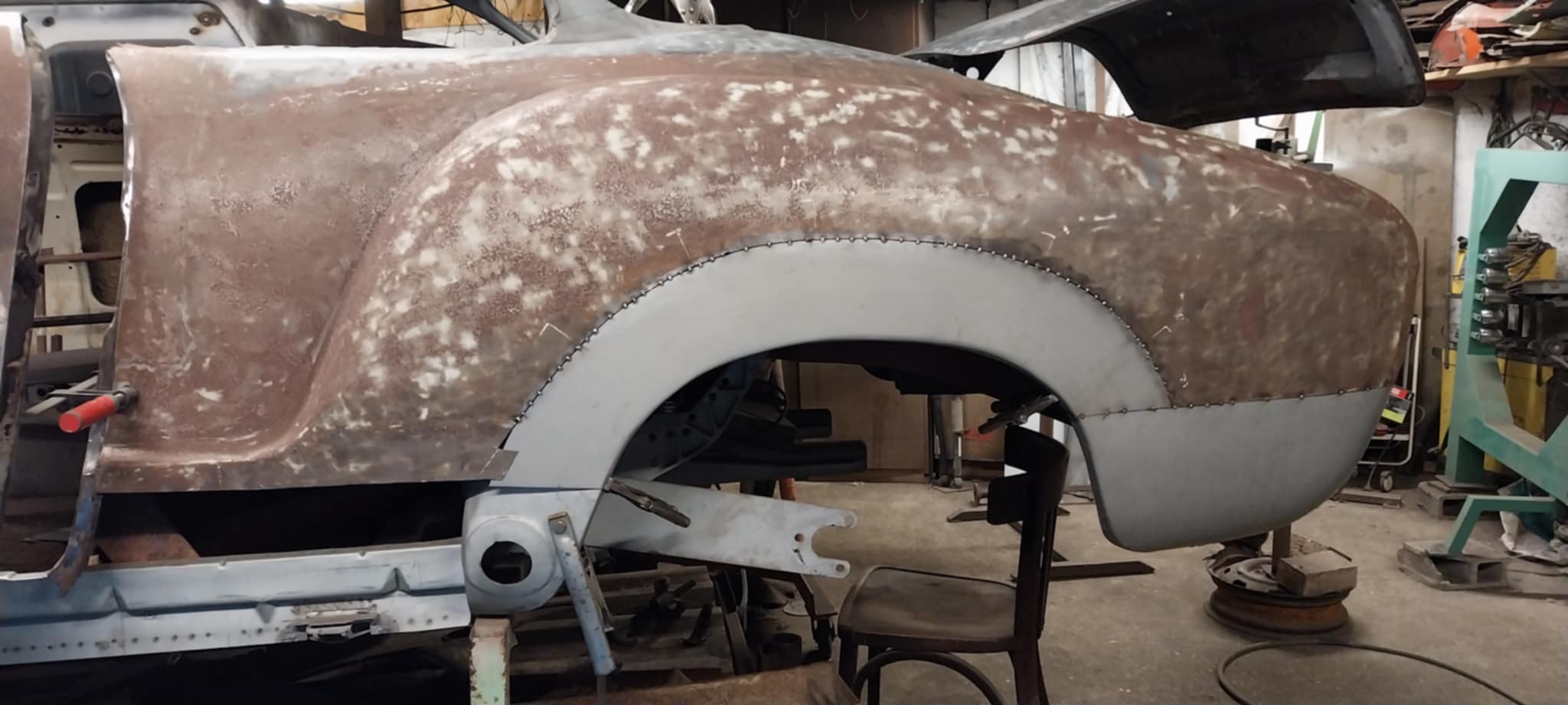 Reprise de la restauration effectuée au préalable par le client et modifications esthétiques des ailes arrière pour installer des roues arrière