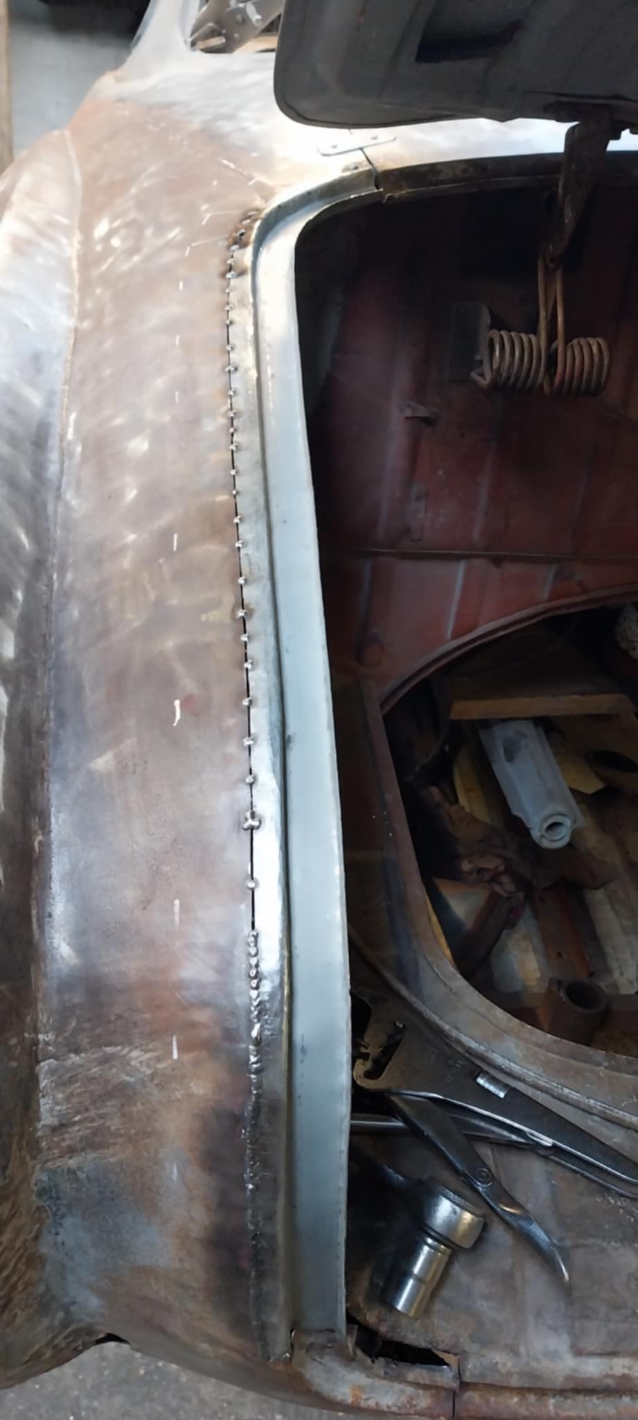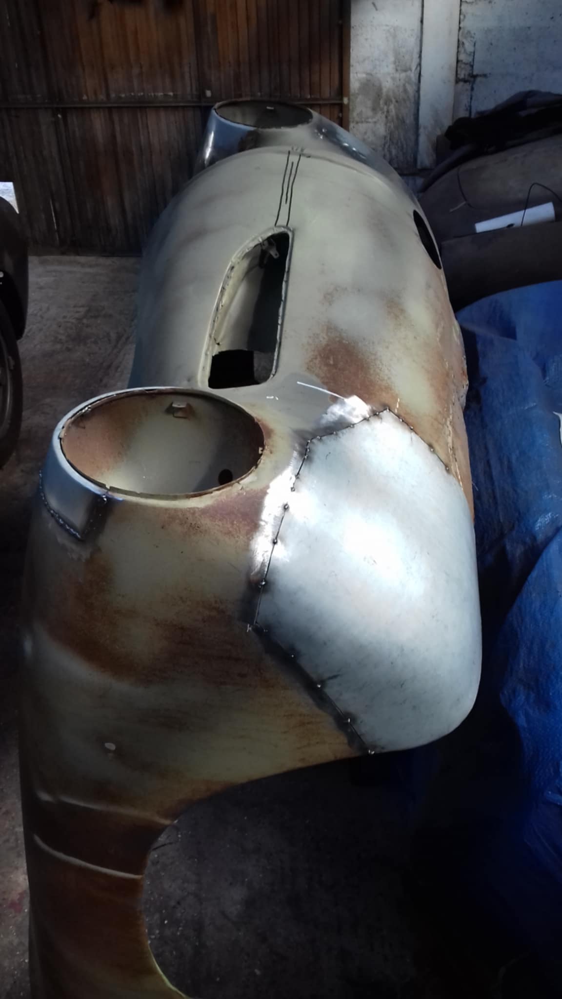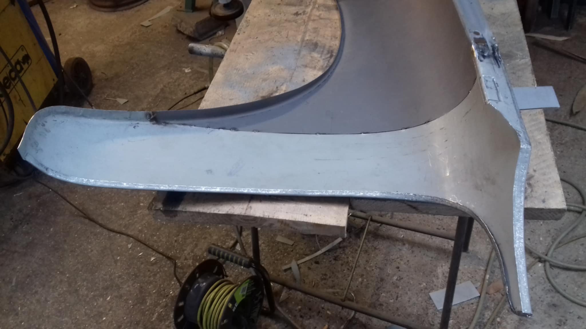 Reprise de la restauration effectuée au préalable par le client et modifications esthétiques des ailes arrière pour installer des roues arrière