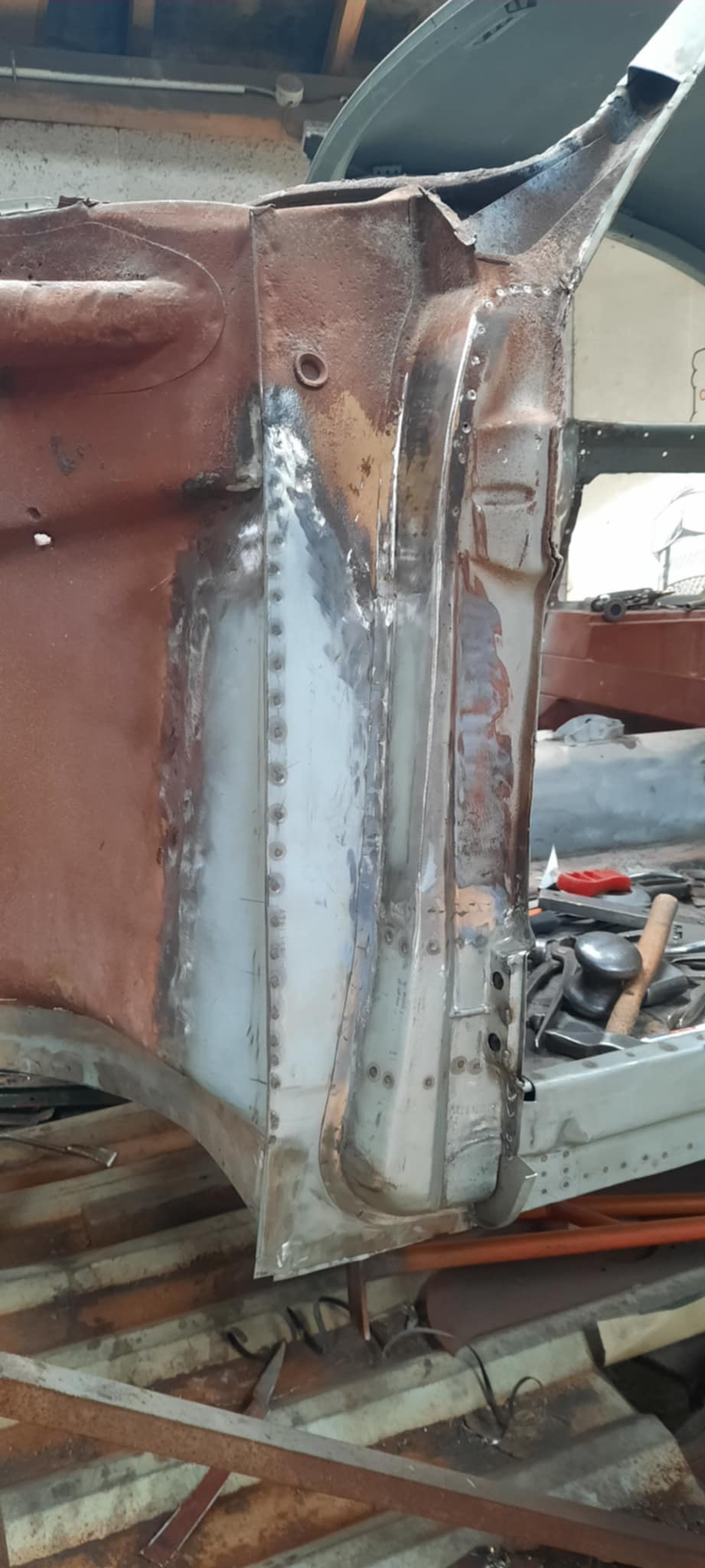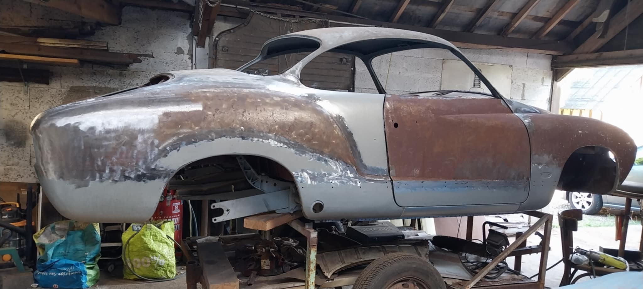 Véhicule importé du Portugal avec une ancienne restauration de mauvaise qualité, restauration intégrale et remise en ligne de la carrosserie.